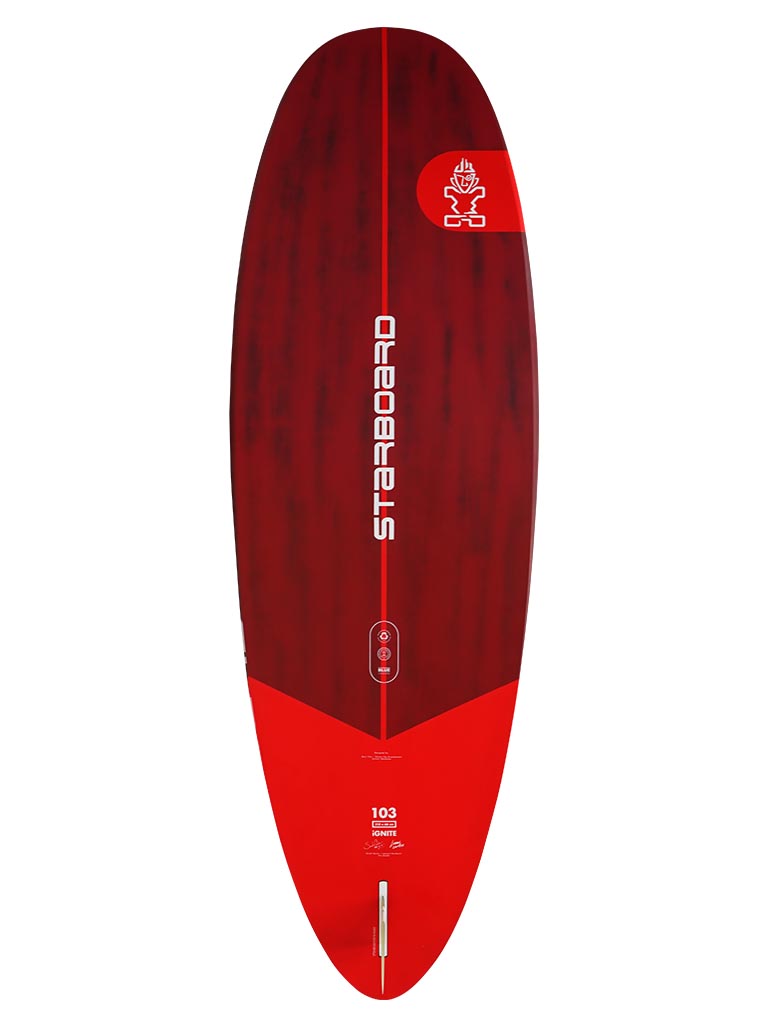Die leicht reduzierte Dicke des Boards bei dem hinteren Fuß gibt dir einen komfortableren Stand für Switch-Moves und verbessert das Carving deutlich. Genieße die große Windrange dank des von der Mitte nach vorne umverteilten Volumens, das die Kontrolle bei starkem Wind verbessert.